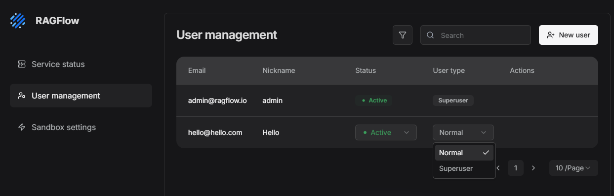 In previous versions, superuser privileges were concentrated by default in the admin@ragflow.io account. While this is acceptable for personal use, in an enterprise environment a single superuser often creates a bottleneck and concentrates authority.