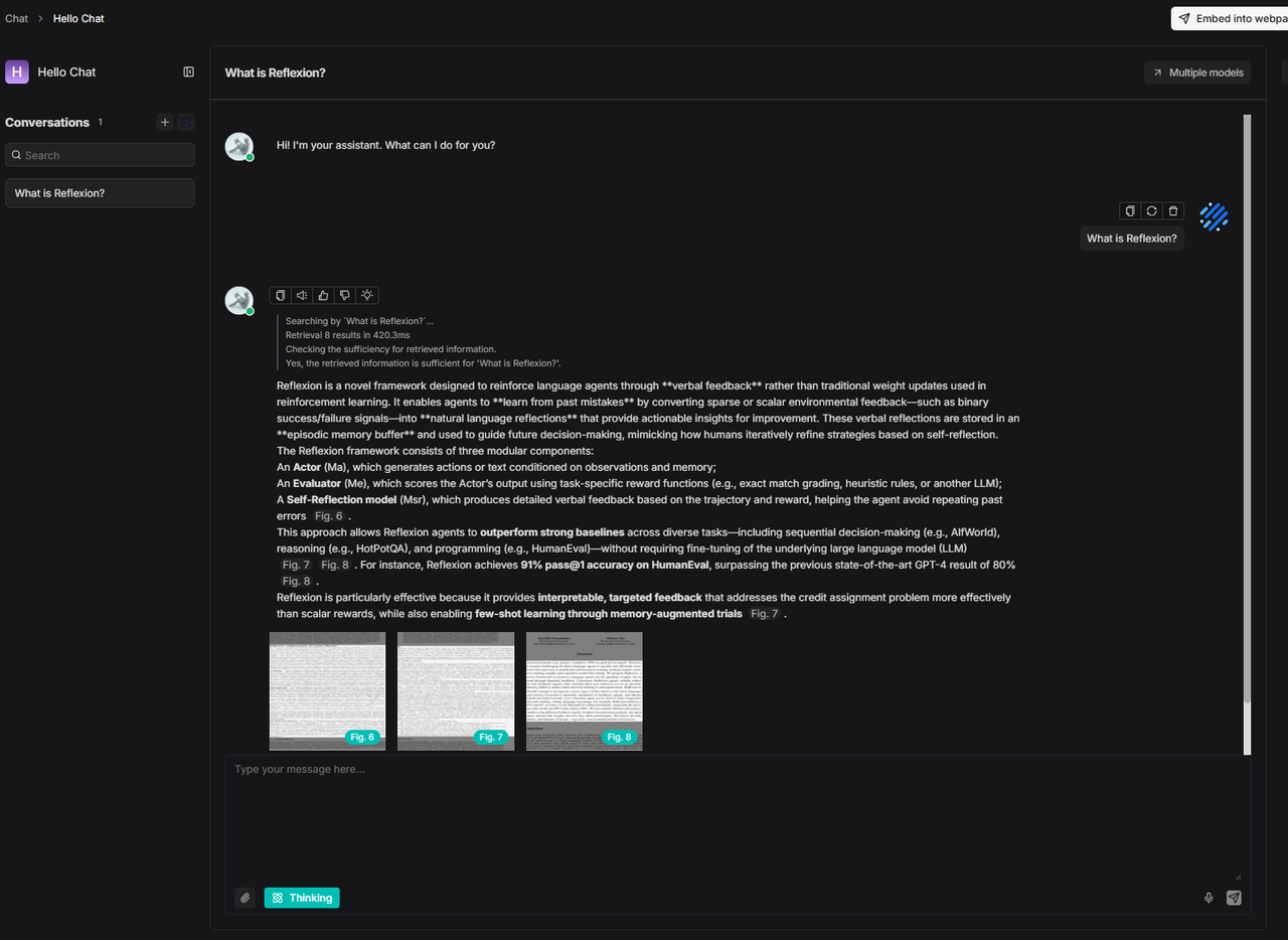 The chat application has introduced a thinking mode to replace the previous reasoning toggle in the configuration. The underlying algorithmic strategy has been optimised for deep research scenarios, further improving retrieval precision.
