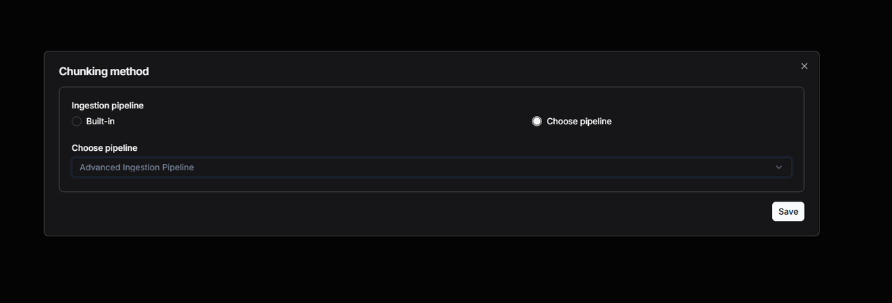 After constructing an Ingestion pipeline, the next step is to associate it with the corresponding knowledge base. On the page for creating a knowledge base, locate and click the "Choose pipeline" option under the "Ingestion pipeline" tab. Subsequently, select the already created Pipeline from the dropdown menu to establish the association. Once set, this Pipeline will become the default file parsing process for this knowledge base.